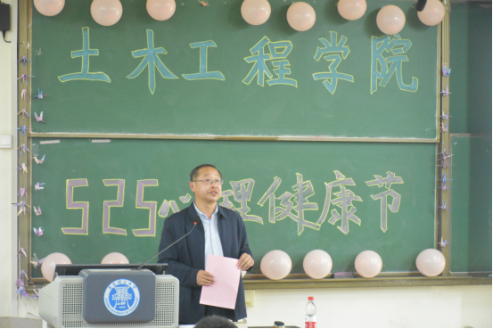 曲成平在讲话中谈到,学生的心理健康教育既是学生自身成才的需要,也是时代发展的必然要求,更是学生健康、快乐、幸福地生活的基础。学院高度重视学生心理健康,在实际工作中认真贯彻“三全育人”理念,系统化开展了心理健康教育工作。全面实施大学生心理健康促进计划,依托心理健康课程、“心动力”心理辅导工作站,通过开展“心理健康月”活动、心理素质辅导、日常心理咨询、朋辈心理辅导、心理普查和心理危机干预等途径和手段,全力加强心理健康教育,取得了积极成效。他希望同学们在本届“5·25”心理健康月活动中释放压力,感受快乐,学会自尊、自信、自强,不断完善自我,同时把所学所感运用到日常生活中,不断提升自我心理调节能力,努力培养健全人格,成为健康自信、乐观向上的新时代大学生。最后宣布土木工程学院第六届“5·25”心理健康节正式开幕。