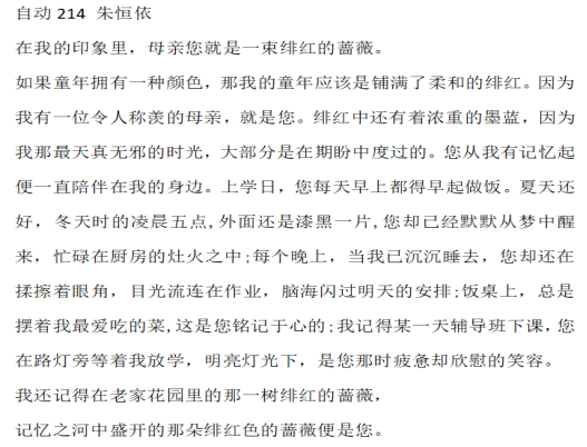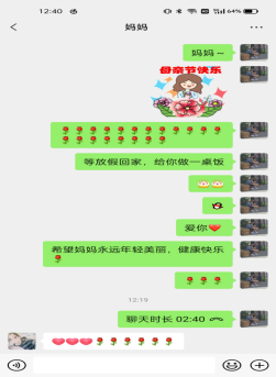 我让妈妈露笑脸。妈妈的微笑,不单是一种情,更是一种力量,是生活中一道亮丽的风景线是最美的语言。同学们为了让妈妈露出笑脸,各显神通,用俏皮话语来逗乐妈妈,用美美的花来感恩妈妈......“今年我十八岁,妈妈把最美好的青春给了我,给了我最好的陪伴。希望千里之外的您注意身体,等放假回家,给您做一桌子饭菜”;“真不好意思开口说‘谢谢妈,我爱你’,现在,想让妈妈高兴,我觉得“我现在需要妈妈”这一句就足够了”......这一段段真情告白,字里行间流露着的恬淡温馨彻底交融,让妈妈嘴角上扬。