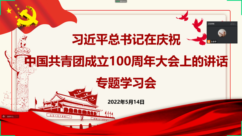 为深入学习习近平总书记在庆祝中国共产主义青年团成立100周年大会上的讲话精神,5月14日下午,管理工程学院利用腾讯会议平台组织“学习习近平总书记在庆祝中国共产主义青年团成立100周年大会上的讲话精神”集体学习,学生第二党支部书记张冯冯、宣传委员郭纯孜、组织委员王俞苹及60余名青年党员代表参加。