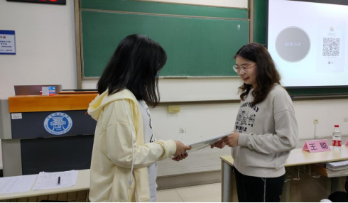 第二环节为就业分享。软件186班张名君和软件184班董令仪从大学生毕业后就业难、就业方向的选择、求职前准备、简历制作和就业面试等方面介绍了自己的基本经历和求职历程。他们均表示学习好专业知识是求职成功的最基本前提,是就业胜利的硬核条件,面对求职,要不怯场、不退缩,主动出击。鼓励有就业意向的同学们要深层次了解就业形势,明确就业方向,帮助了团支部成员在未来众多选择中找到属于自己的路。