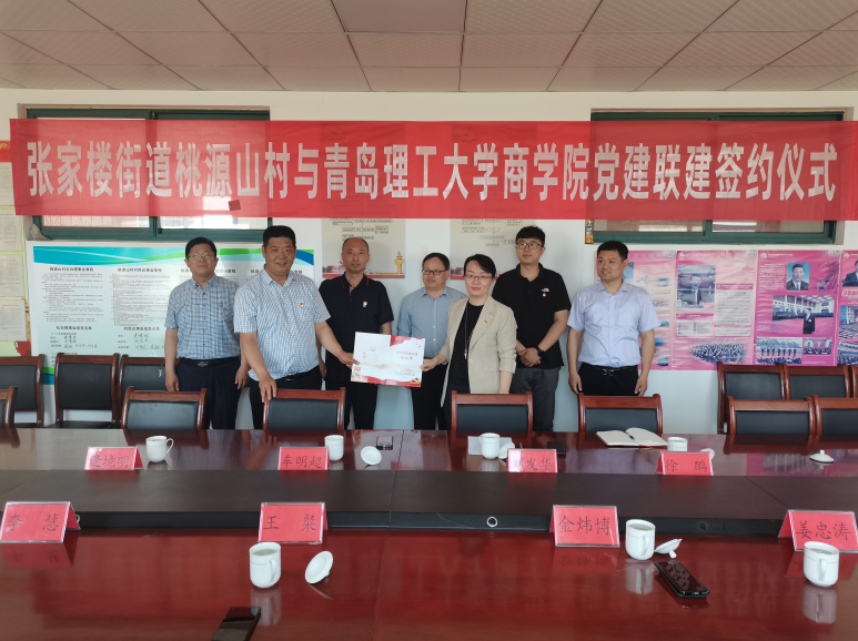 5月21日,商学院党委与张家楼街道桃源山村党委举行党建联建签约仪式。商学院党委书记王粲、党委副书记兼副院长李慧、院长助理金炜博、经济系党支部书记兼主任汪艳涛、研究生支部书记姜忠泰、张家楼街道党工委书记车明超、张家楼街道桃源山村党委书记逄境明、工委组织部选派第一书记徐鹏等参加活动。签约活动由张家楼街道党工委组织委员刘发华主持。