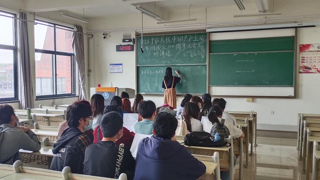 5月10日上午10时,庆祝中国共产主义青年团成立100周年大会在北京人民大会堂隆重举行,理学院领导班子、青年教师代表、全体辅导员、部分学生代表在学院分会场A414观看了大会现场直播,聆听习近平总书记的重要讲话。大会直播结束后,学院组织全体辅导员、学生社团以及30余位团支部书记、学生会学生干部、志愿者以及学院团委兼职学生干部等继续深入学习习近平总书记在庆祝大会上发表的重要讲话,全院师生掀起学习热议的高潮。