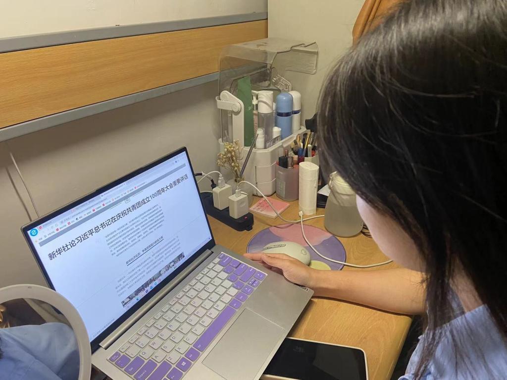 以思想引领社团和年级团支部为抓手,组织全体共青团员创新形式学习。学院思想引领社团青年马克思主义者学习研究会组织同学制作手抄报,逐字逐句抄写习近平总书记在庆祝中国共产主义青年团成立100周年大会上的重要讲话内容,深化认识,加强记忆,将精神学习落于笔尖书写行动。学院学生会、团委内设机构学生骨干和志愿者以小组讨论形式开展学习研究,并结合自身学习、工作和生活实际,发表个人学习感悟。