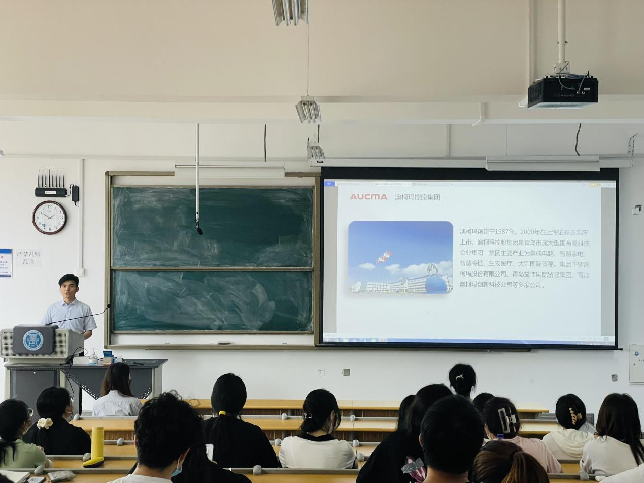 为探索人才培养新模式,引导2023届毕业生先一步了解就业形势、做好职业生涯规划,商学院于6月8日在二教302教室举办“澳柯玛股份有限公司管培生宣讲”活动。本次活动由澳柯玛股份有限公司人力资源部招聘主管董国旗主讲,辅导员石路捷主持,2023届毕业生参加。