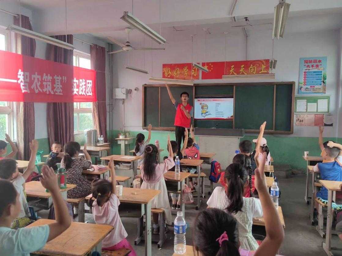 “挚梦星火—智农筑基”社会实践团队是入选全国“七彩假期”志愿服务示范团队,在烟庄村红军小学展开为期十天的支教活动。在开学仪式上,村支书孙云贵表示“乡村教育是重中之重,你们给孩子带来的不仅是知识和快乐,更是希望”。