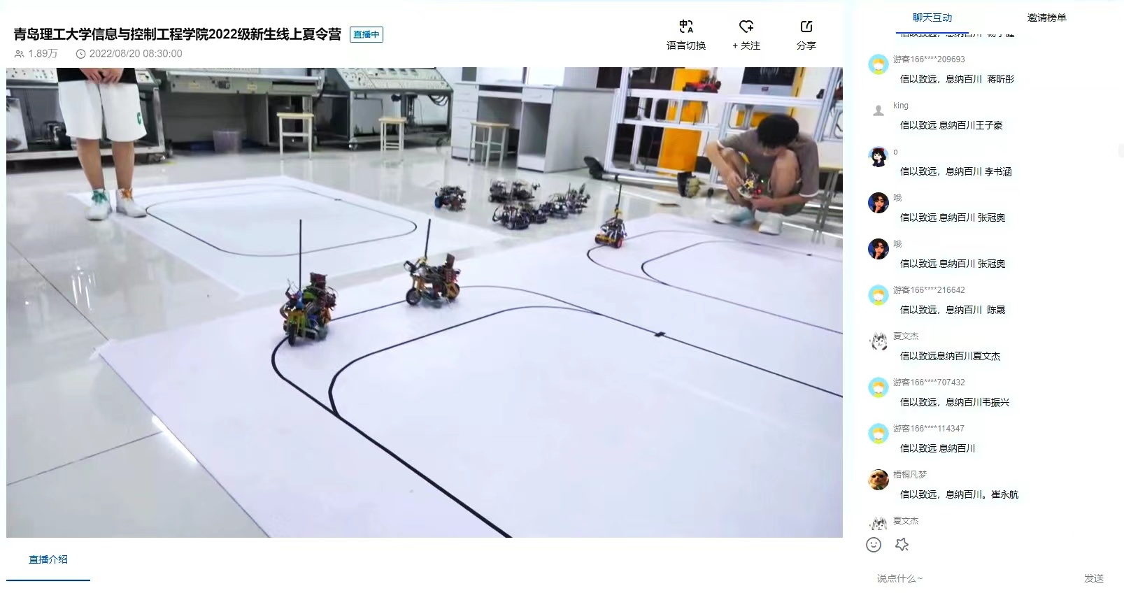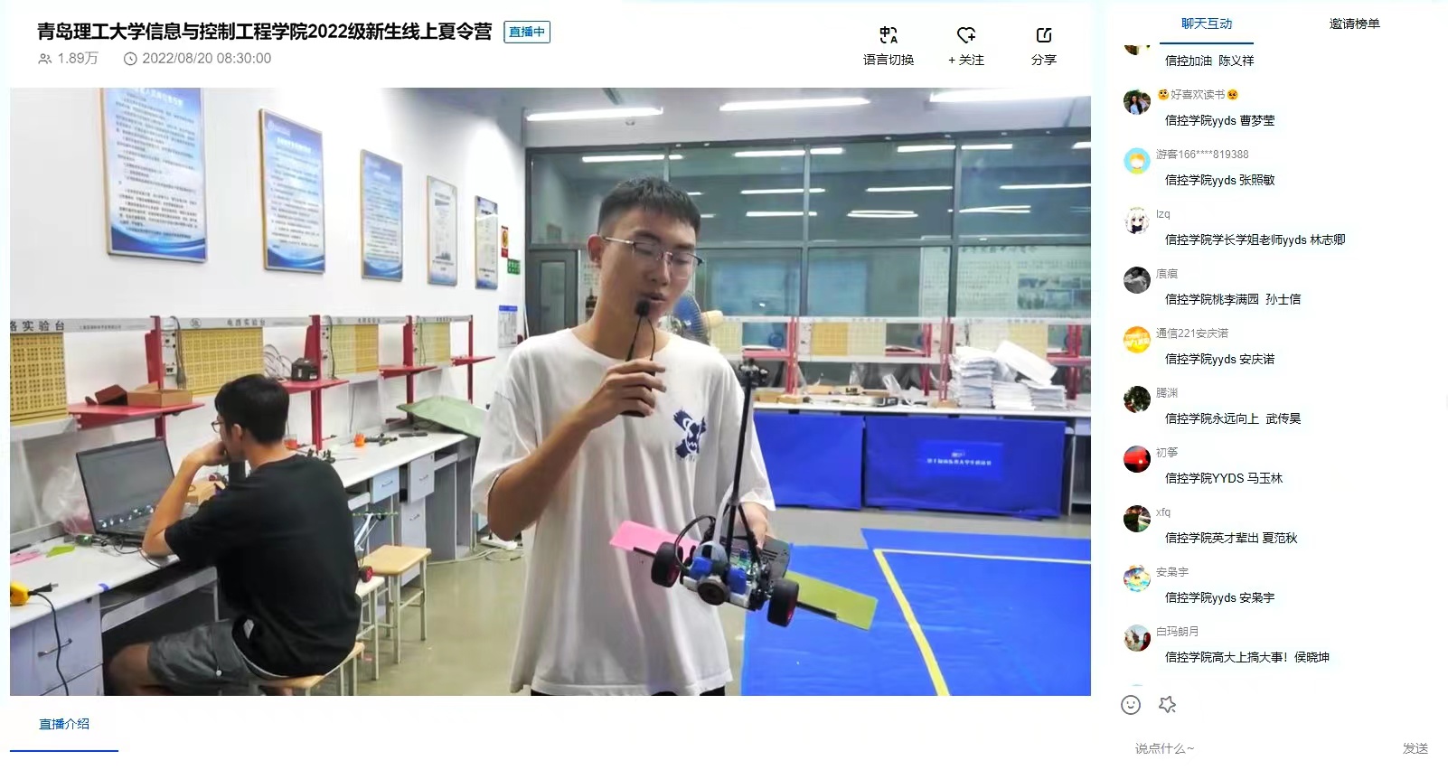 “老师讲的太有意思了,迫不及待想入学了”“学校这波操作,爱了爱了”“学长学姐太厉害了,我也想参加智能车大赛”……直播间人气爆棚,新生们对大学的学习和比赛摩拳擦掌,跃跃欲试。