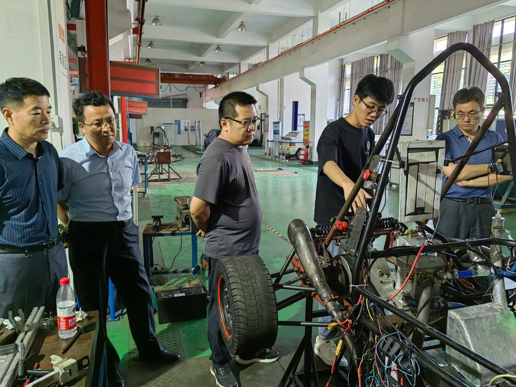 座谈结束后,涂勇刚一行实地走访方程式车队建设场地,考察了学生备赛情况,肯定了大学生方程式车队的比赛成绩。此次与吉林大学青岛汽车研究院研讨交流对促进学院车辆工程专业人才培养,方程式车队建设等方面具有重要意义。为下一步双方在就业、实习、产教融合、技术服务等方面的深度合作打下了坚实的基础。
