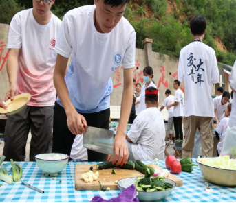 随后,为了积极践行毛泽东同志在延安生产动员大会上的号召,实践队员与其他高校实践团队成员一同“自己动手,丰衣足食”,成员间分工协作:择菜、洗菜、切菜、炒菜各司其职,相互帮助,发挥各自的优势,在动手实践中相互学习。最后超额完成“六菜一汤”的任务,实现“十菜一汤”。