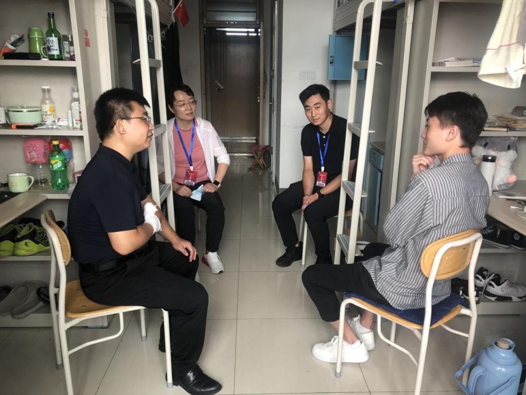 走访过程中,老师与同学们围绕学生假期生活学习、家庭情况、返校情况和学习、生活等方面有无困难等问题进行了亲切的交谈,仔细询问学生暑假期间学习、生活状态、社会实践进展及新学期规划等情况,对同学们提出的问题和困惑进行细致讲解,并针对不同年级不同专业学生要求做好新学期的规划,尽快投入到新学期学习工作当中。提醒同学们注重自身各方面能力的提高,保持身心的健康发展。老师们还对学生宿舍安全、内务卫生、通风消杀等情况进行全面检查,要求同学们严格遵守学校疫情防控要求,坚持“一日三检”和每日宿舍消杀。提高自身安全防范意识和防诈骗意识,注意用电安全、财产安全、出行安全、食品卫生安全以及各种诈骗。整个走访过程气氛温馨、融洽,使刚返校的学生感受到了殷殷关怀之情。