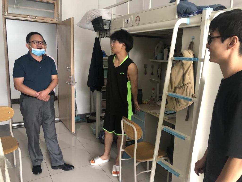新学期伊始, 为深入了解学生的学习生活情况、强化学生宿舍安全管理,营造一个舒适、卫生、和谐、健康的环境,8月27日,商学院党委书记王粲、院长云乐鑫、党委副书记兼副院长李慧带领全体辅导员深入学生宿舍走访慰问,为同学们带来关心和问候。