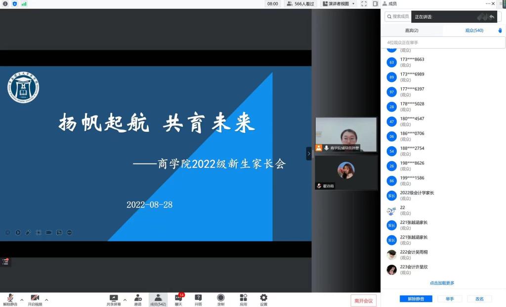 为进一步加强学院与新生家长的交流,凝聚家校育人合力,推动形成家校联动育人格局,8月28日晚七点,商学院依托腾讯会议组织召开2022级新生家校共育讲坛第一期,邀请心理学专家刘启辉副教授做题为“目送与守望——兼谈大学生心理健康与学业发展”的家校共育专题讲座,商学院新生辅导员孙楚及2022级全体新生家长参会。