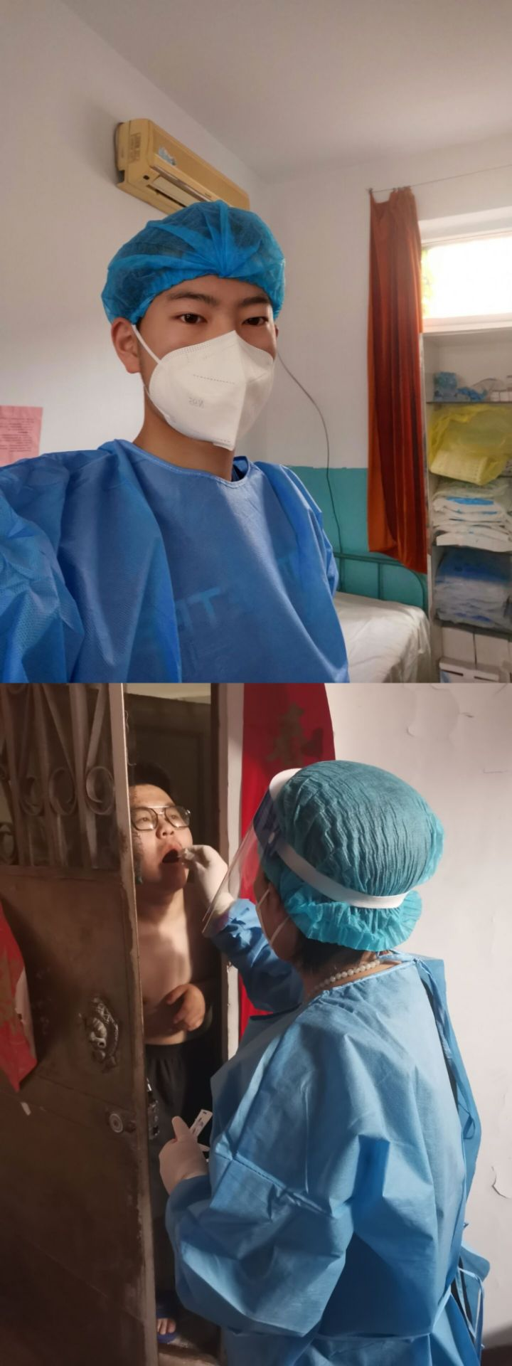 与此同时,队员们通过小区居委会联系到当地医院的医护人员,为返乡人员进行核酸的采集工作。在做好个人防护的前提下,队员们和医护人员一同进行上门核酸检测,在保质保量的条件下提高工作效率。