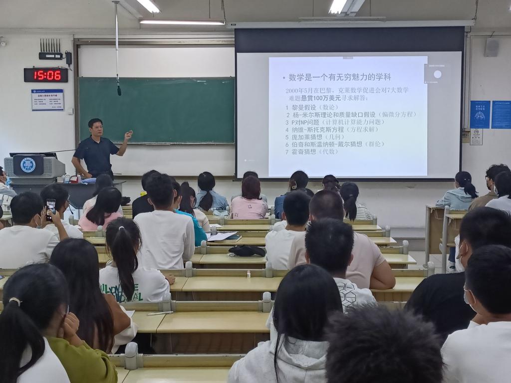 随后,在B230、B225等四个教室里,应用数学教研室、应用物理教研室、力学教研室的老师们早早就位,精心准备了专业介绍的课件,为2022级新同学们细致解读培养方案,展示往届优秀毕业生去向等,整体内容丰富有趣。“大学是自己的,一定要经营好!数学是人的思维内核,学数学重在能力培养,不要因为一时看不到数学理论的实用价值而心灰意懒。”数学教研室的王金良教授在“学业导师面对面”现场寄语新生。