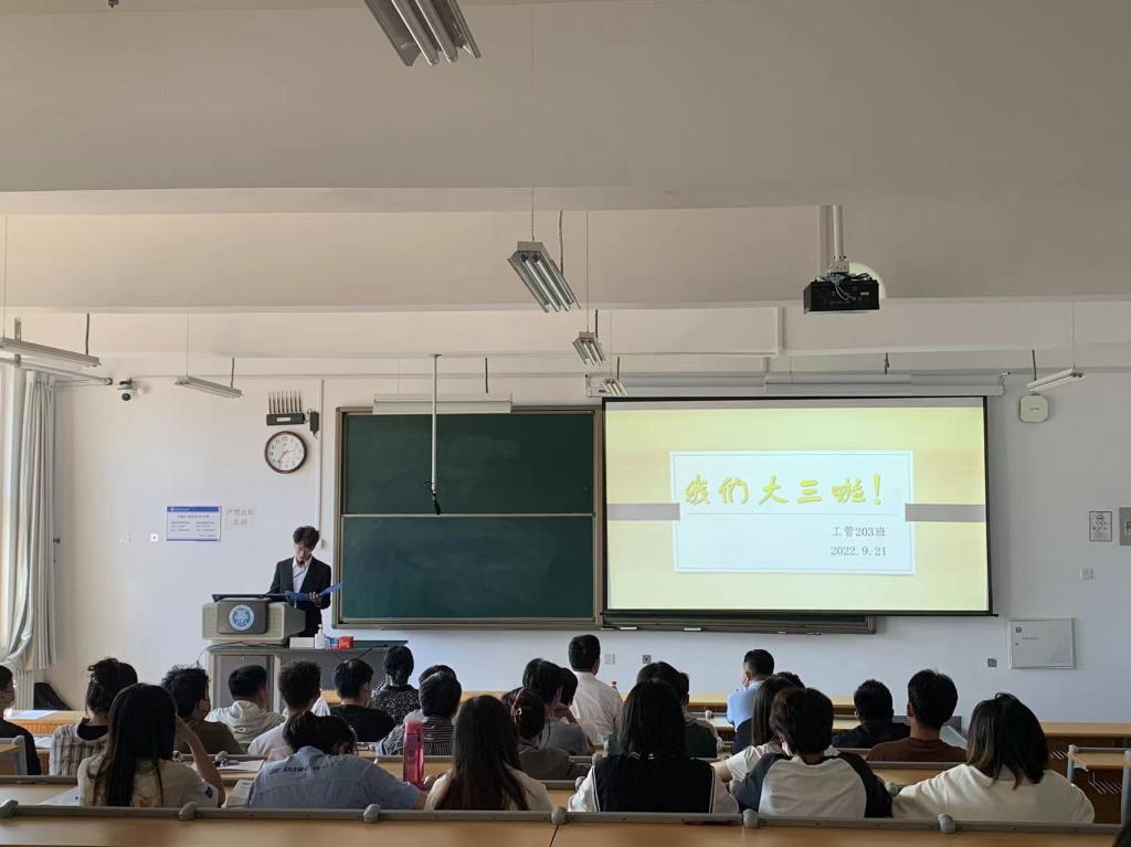 为增强学生的生涯规划意识,帮助学生树立新学期的奋斗目标,9月21日下午,管理工程学院工管203班在嘉陵江路校区主教学楼举办新学期升班仪式,学院党委副书记、副院长王中帅,学业导师王志强,班主任李晓霞及工管203班全体在校同学参加会议,会议由班级副班长董锦霖主持。
