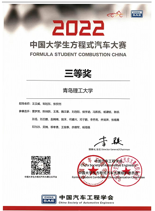2022中国大学生方程式系列赛事包含中国大学生电动方程式大赛、中国大学生无人驾驶方程式大赛、中国大学生方程式汽车大赛三类赛事。比赛项目涵盖技术检查、静态比赛、动态比赛,涉及赛车设计、商业报告、成本与制造分析、直线加速测试、8字环绕测试、高速避障测试、操控性测试、耐久测试、高速循迹、动态裁判合练等方面。我校大学生方程式赛车在所有参赛队中综合成绩排名第35位,获得2022中国大学生方程式汽车大赛全国三等奖。