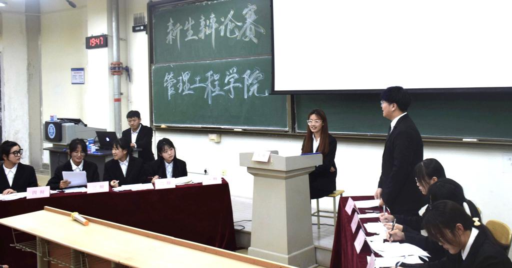 10月27日,管理工程学院新生辩论表演赛在主教B335教室落幕,2022级辅导员王俞苹、高鹏磊,学院学生会、分团委代表参加此次活动。