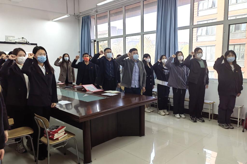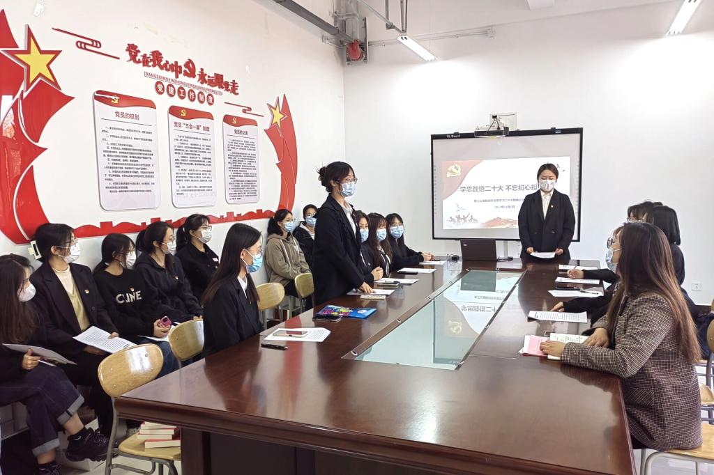 仪式结束后,临时党支部开展“学习宣传贯彻党的二十大精神”主题党日活动。临时党支部副书记杨舒杰带领全体党员学习二十大报告原文,参会党员就党的二十大报告精神展开研讨,结合自身学习情况,交流学习体会和收获。临时党支部青年委员李亚溱分享道:“我们必须坚定信念跟党走,心怀梦想有又脚踏实地,立志做有理想有担当敢奉献的青年。”