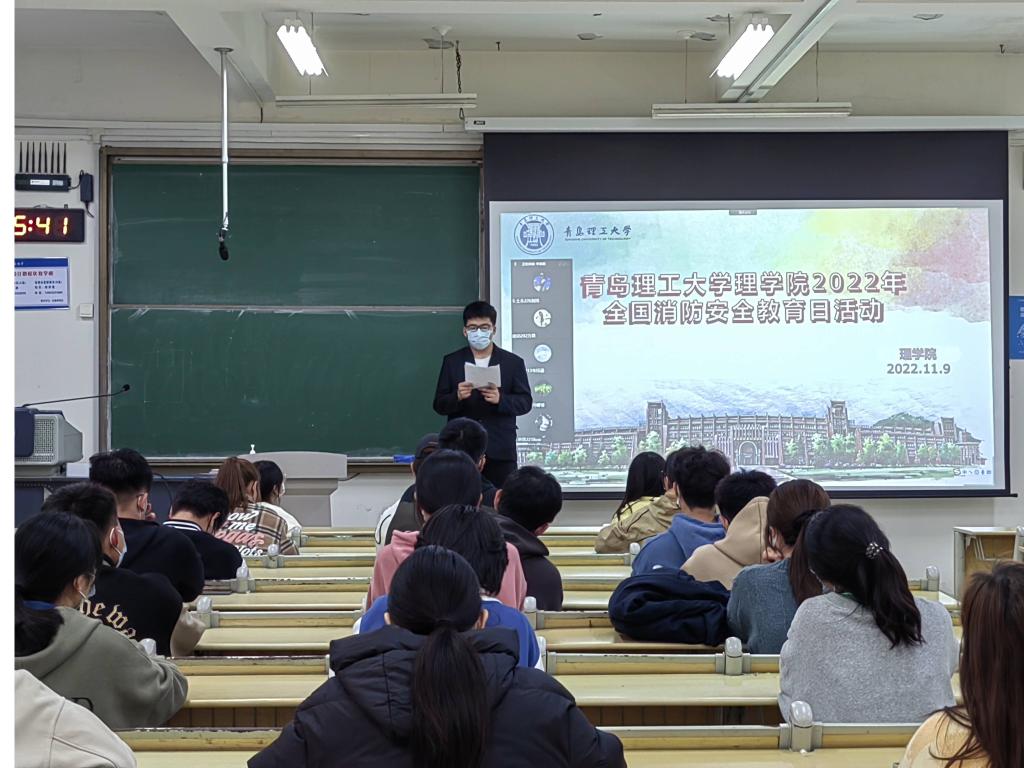 2022年11月9日是第31个全国消防日。为认真学习宣传贯彻党的二十大精神,深刻领会习近平总书记关于安全生产、防灾减灾救灾等应急管理工作重要论述,切实提高在校学生的消防安全意识,自觉履行建设平安校园的责任和义务,11月9日,理学院学生会在主教学楼B217教室以“强化消防安全意识,建设平安校园”为主题,通过观看消防安全警示教育纪录片、组织消防安全知识竞赛等形式开展系列宣传教育活动。活动经“到梦空间”在校内发布通知,各学院100多名同学通过线上报名参赛。