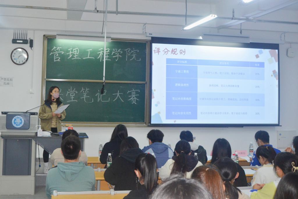 为进一步加强学院学风建设,促进优良学风的形成,帮助学生养成良好的学习习惯,11月9日,管理工程学院于C1-1-202教室举办“21天习惯养成,寻找最美课堂笔记”大赛,辅导员李佳妮、王俞苹、高鹏磊,学院优秀学生骨干代表及国家奖学金、省政府奖学金获得者受邀担任评委。
