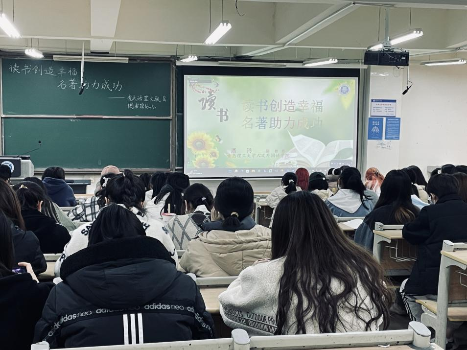此次讲座分为四部分进行:一是读书和幸福的概念,潘玲老师强调:读书带来了三样东西——情怀,胸怀,气质。读书是门槛最低的高贵,如果想要遇到更好的自己,不妨试试浸入书中的世界。书中自有黄金屋,书中自有颜如玉,腹有诗书气自华。二是读书与幸福的关系,潘玲老师讲到,“幸福取决于幸福感,眼见为虚,有灵为安;世界在变,幸福不变。”三是为什么要读书,她认为读书一是可以开阔眼界和格局;二是在不断发展的世界中,读书永远是我们的底气和阅历,成为我们处理各种软实力问题的解决方案的源泉。最后,潘玲老师强调读书不等于成才,但是不读书肯定不能成才。我们要阅读名著,了解名著深刻的社会内涵,体会其丰富的艺术价值。并且在读书中引发思考,找到更好的自己。