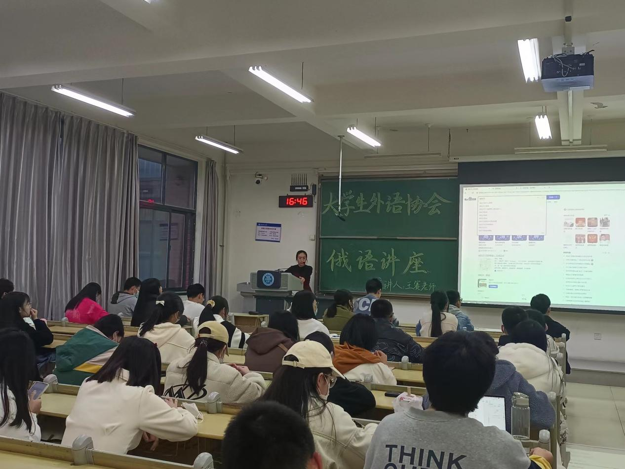 11月23日,由商学院指导的学校大学生外语协会在主教学楼B309举办“小语种大世界”系列讲座之“俄语说世界”讲座。协会指导老师、商学院辅导员王赛作为本次讲座主讲人,向同学们分享俄语知识,领略俄罗斯风土人情。近50名社团成员和对俄语及俄罗斯文化感兴趣的学生参加了本次讲座。