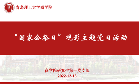 观看电影铭记历史:商学院研究生第一党支部组织支部党员学习了有关南京大屠杀的文献记载,随后组织支部党员线上观看电影《南京!南京!》。影片从多个方面复原了当年日军的所作所为,也映刻出了在战火硝烟中百姓流离失所,惨绝人寰的悲愤场景。放映过程中全场肃穆安静,气氛沉重而严肃。看到受难同胞的苦难经历不少同学的眼中都泛起了泪花。观影过后,同学们纷纷表示,作为当代青年学生,要牢记民族苦难历史,明确“只有中国共产党才能救中国,才能发展中国”的真理,“坚定不移听党话、跟党走,怀抱梦想又脚踏实地,敢想敢为又善作善成,立志做有理想、敢担当、能吃苦、肯奋斗的新时代好青年,让青春在全面建设社会主义现代化国家的火热实践中绽放绚丽之花。”
