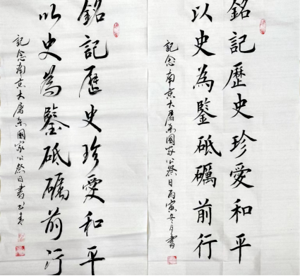 以史为鉴,砥砺复兴之志。每一次公祭仪式上,青少年代表们都会朗诵《和平宣言》,当饱含深情、铿锵有力的声音响彻公祭广场,也在传达着亿万国人的共同信念——以史为鉴,中华民族的前景必将无比光明。辅导员殷宗华也用毛笔写下了“以史为鉴砥砺前行,铭记历史珍爱和平”的铮铮誓言,也激励了广大青年不忘来时路,走好脚下的坚定路。