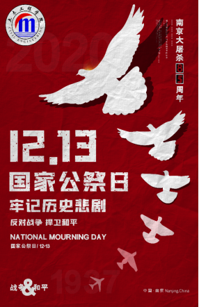 公祭观仪式,默哀祭同胞。上午10点,国家公祭仪式在侵华日军南京大屠杀遇难同胞纪念馆举行,为30余万南京大屠杀遇难同胞默哀。公祭仪式进行时,全体成员集体默哀,缅怀南京大屠杀所有的无辜死难者,缅怀为中国人民抗日战争胜利奉献出生命的革命先烈和民族英雄,进一步激励师生不忘苦难记忆,砥砺复兴之志。国家公祭仪式最后,85名青少年朗诵《和平宣言》,放飞和平鸽。“龙盘虎踞,彝训鼎铭,继往开来,永志不忘。”