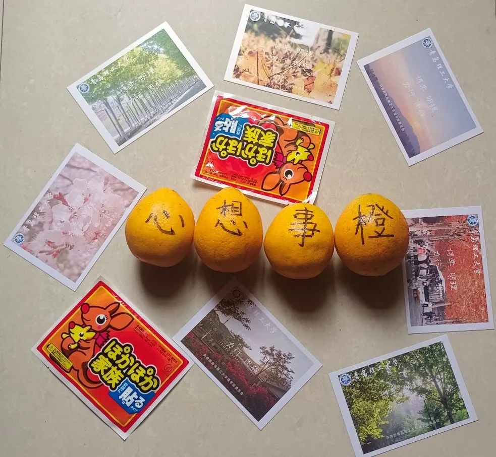 手写祝福明信片、心想事“橙”、暖宝宝…充满寓意和祝福的“暖心”礼物成了考研倒计时路上的“加油包”。为了减少对考研学子的打扰,理学院团委提前收集了考研同学宿舍和自习室的信息,精准地把各个暖心礼物送达考研学子手中。19级辅导员刘奕老师通过明信片寄语考研学子:“奋斗者在汗水汇集的江河里,将事业之舟驶到了理想的彼岸。在最后的冲刺阶段希望同学们注意休息,以强健的体魄、平稳的心态顺利完成考试,成功上岸。”