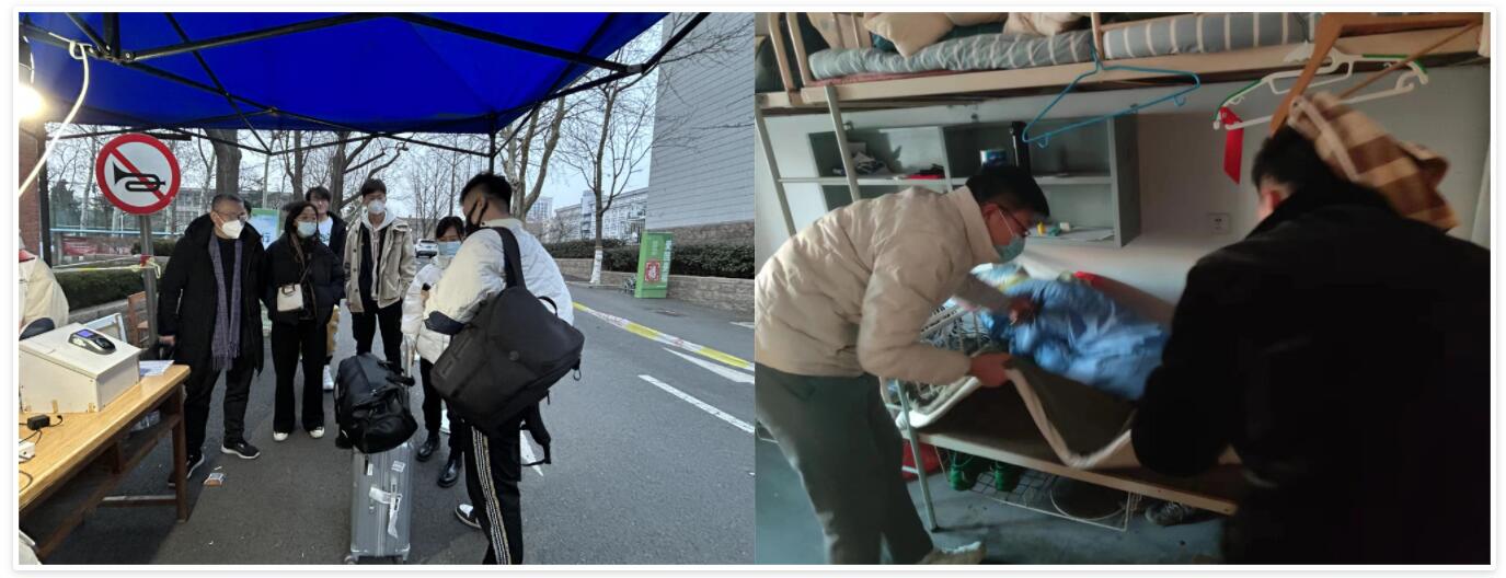 “深”走访,传递温暖真心关怀。2月19日上午,在返校入口现场,学院党委书记肖学斌,党委副书记、副院长范晓光以及全体学生工作干部温情迎接、看望慰问返校学子,为他们送去学院的关心和问候。肖学斌仔细询问了返校学生在家复习情况和新冠康复情况,叮嘱他们要注意身体健康,认真备考,争取考一个好成绩。在学生宿舍,范晓光以及全体辅导员深入学生宿舍,及时了解学生返校复学、生活和身心健康等状况,叮嘱同学们要做好新学期规划,碰到困难时,多与辅导员、班主任、专业教师交流联系,学院会积极协调帮助同学们解决。在宿舍走访中,一名学生因被褥洒水受潮无法使用,学院团委书记、学工办主任杨霈宣将自己的被褥借给了学生,帮助解决了困难。