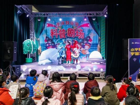 1月25日,重庆科技馆举行齐“聚”科学·家展厅主题科普活动。游客们在A区2楼科普剧场观看《小宇的宇宙漫游记》科幻科普剧,即可获得灵星币。现场志愿者负责协助工作人员进行电影的放映,组织好排队秩序。在活动中,体验风能、水能、太阳能等展品,完成任务单,寻找碳排放的“拯救者”,获得灵星币。
