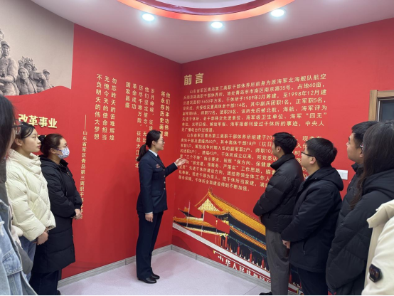 为更好学习传承雷锋精神,近日,校武装部及商学院共赴山东省军区青岛第三离职干部休养所开展“雷锋精神我传承 踔厉奋发新时代”学雷锋活动,校武装部国防教育科副科长季献涛,商学院团委书记薛诚,辅导员杨洪敏、袁涛,商学院学生党员代表、军事爱国者协会成员代表参加活动。