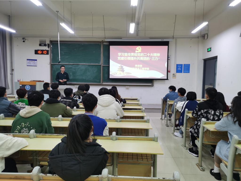 学院党委统筹引领,当好党的二十大精神学习宣传的“定盘星”。学院党委坚持把深入学习宣传贯彻党的二十大精神作为首要政治任务和头等大事,通过集中学习、专题党课、云读书等形式,围绕“宣讲精神”“坚定信仰”“担当使命”等主题,面向全体党员开展“学思践行二十大,踔厉奋发新征程”主题活动,引导广大师生党员将党的二十大精神内化为干事创业的动力。