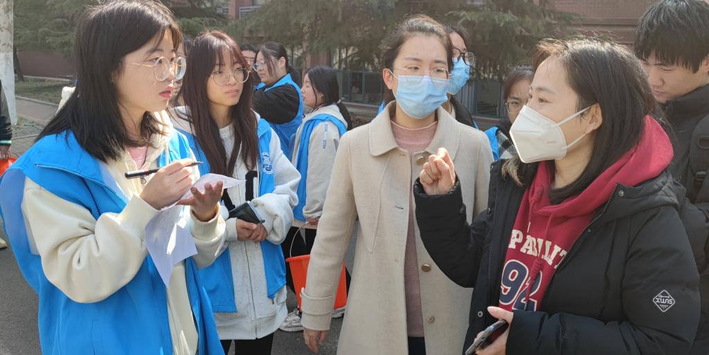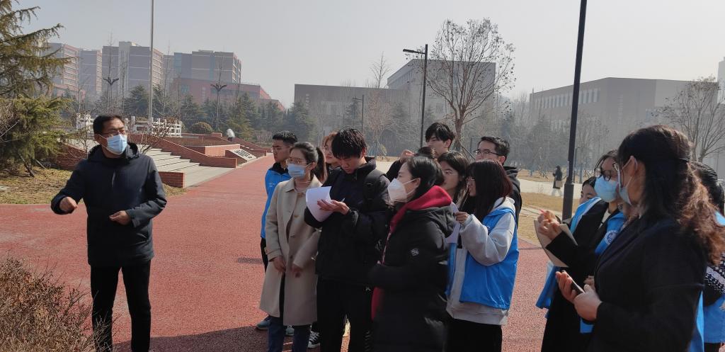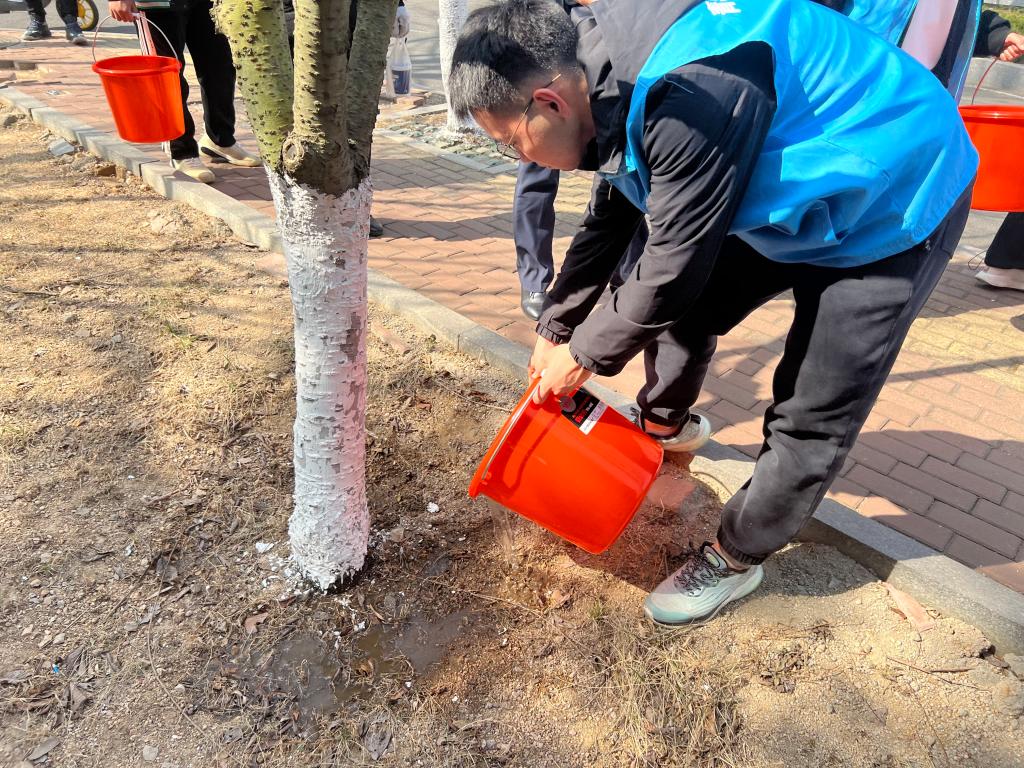 活动中,学院邀请后勤处校园与物理管理服务中心主任王磊、校园环境卫生监管员赵丽萍、宏泰物业嘉陵江路校区项目经理韩忠贤、宏泰物业绿化养护负责人孟宪明等共同参与。学院学工办主任兼团委书记刘奕以及“护绿”小分队志愿者们在后勤处的带领下实地考察了嘉陵江路校区主教学楼区域和中央院系区植物的数量和种类,王磊就校内植物的中文学名、目科属、习性、文化历史以及科学养护方法等内容对同学们进行了详细讲解。考察结束后,“护绿”小分队志愿者们以嘉陵江路校区主教学楼区域和中央院系区植物为重点进行了科学养护实践,在劳动实践中感受环保的意义和快乐。
