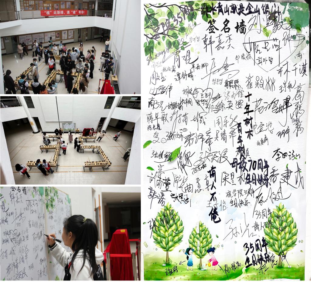 领养绿植,传承学院精神,传递师生温情。3月11日,学院团委在建筑馆三楼中庭举办“‘植’此新绿,遇‘建’有你”植树节绿植分享活动。2023年是学院专业办学35周年,活动以领养新绿植,萌发新动力为寓意,参观学院一流专业、一流课程展示榜,参与绿植领养活动。现场师生纷纷在现场与绿植合影,在签名墙上留下对学院专业办学35周年的祝福。通过活动,让同学们在实践中体悟学院35年来从一颗种子到大树的历程,同时培养了学生爱“爱绿、植绿、护绿”的环保意识,营造的浓厚的学院文化氛围和舒适的学习生活环境。