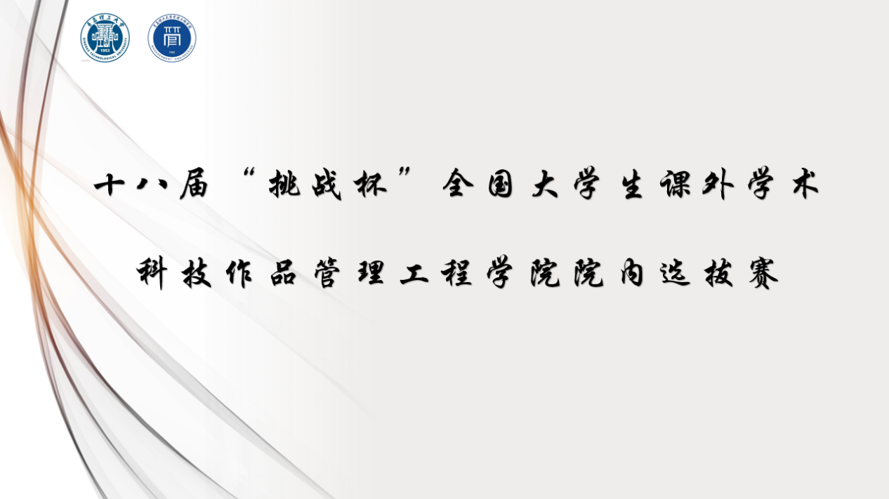 为大力培养科研创新型人才,确保学院创新创业工作有效开展,3月15日,管理工程学院在C1-2-311教室举办管理工程学院第十八届“挑战杯”大学生课外学术科技作品竞赛院赛答辩。校团委副书记王鹏飞、创新创业学院李良洁、土木工程学院团委书记王俊富、机械与汽车工程学院团委书记王成、辅导员崔新江担任评委,比赛由学院党委副书记、副院长王中帅主持。