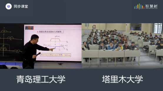 王绪虎老师以“学练结合”的授课模式,为两校学生呈现了一堂精彩的同步课堂。通过课堂提问,课堂练习,习题分析等方式,以模拟通信技术历史发展为主线,带领同学们深入浅出的学习了调幅(AM)、双边带调制(DSB)、单边带调制(SSB)、残留边带调制(VSB)等内容。塔里木大学学生说,这种上课方式令人印象深刻,王老师根据货物运输导入课程,再深入浅出的讲解调制的原理,由易到难,生动形象,极大地提高了同学们在课堂的关注度,学习效果显著提升。