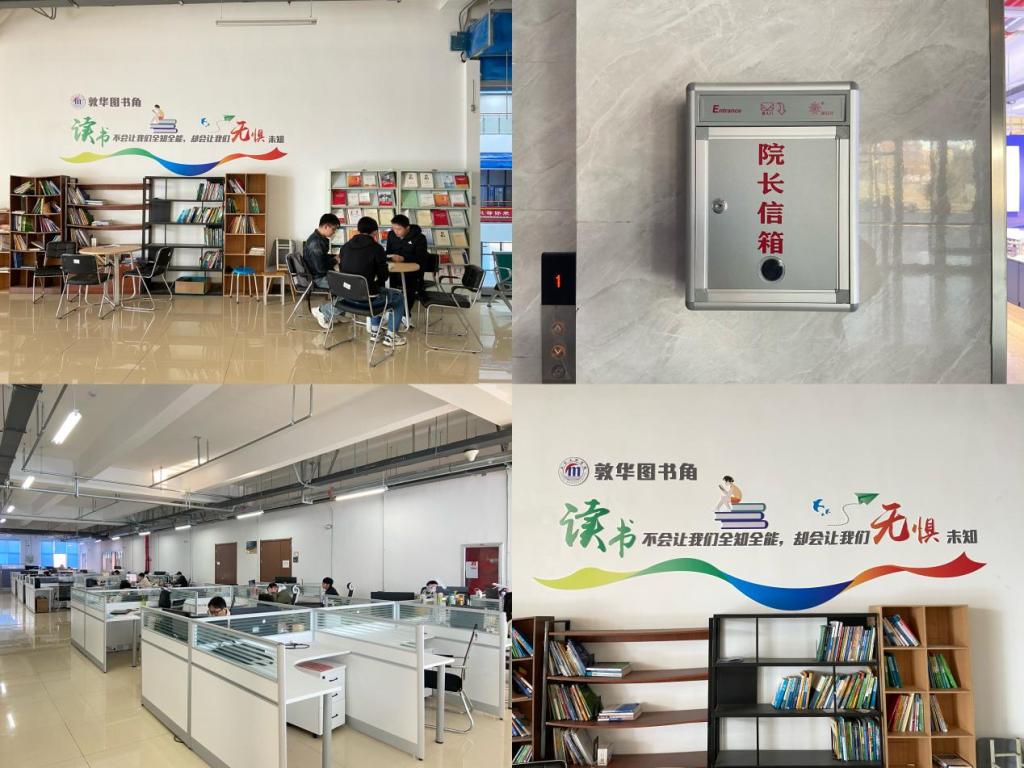 系“纽带”,提高解决问题精准度。2023年开学初,为畅通学院领导与学生之间互动交流渠道,加强学院领导与学生之间的密切联系,便捷、高效地服务学生,学院设立了“院长信箱”。“院长信箱”自设立以来,与学院和学校各部门充分对接,及时受理、转办、反馈线下和线上学生反映问题的信件5件,接纳学生建议信件2件,解决了学生在专业学习和日常生活中“急难愁盼”的问题。“院长信箱”也逐渐成为了学院与学生之间沟通的纽带接口。学院为方便学生办理各类事务,坚持“一体两翼”的工作模式,安排教学、学工老师集中办公,以“只跑一次、一次即办”的宗旨,便捷、高效帮助学生办理各类事务。学院在土木楼各处设立敦华图书角,为学生们课余时间读书提供便利。