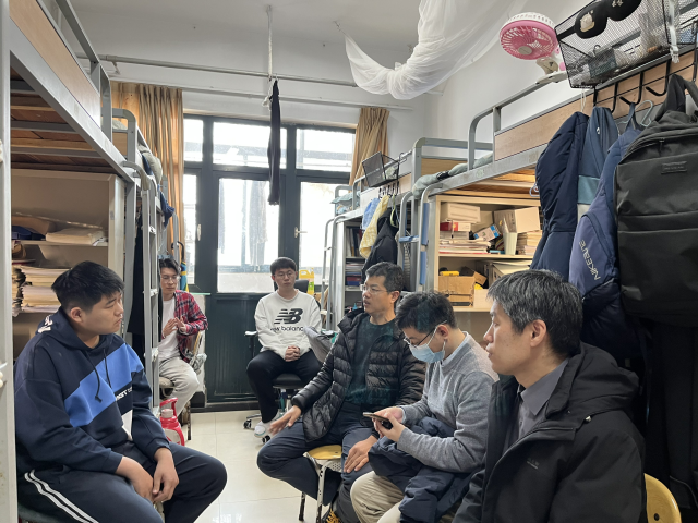 3月29日,信控学院开展第二轮“博士进公寓”活动,学院党委书记高洁带领自动化教研室、机器人教研室党支部书记、专业课教师、班主任代表及毕业班辅导员,深入2023届毕业生宿舍,提供“量身定制”的考研指导和就业帮扶。