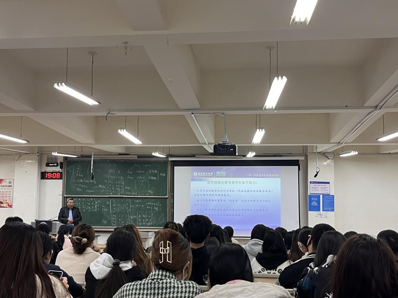 为多举措推动学院学风建设,浓厚数学建模竞赛氛围,提高学生对科研竞赛的了解,4月9日,管理工程学院于主教B225举办“数学建模竞赛”宣讲会,本次宣讲会特邀理学院副院长范兴奎教授为同学们进行宣讲,宣讲会由辅导员韩群、吴思瑶主持。