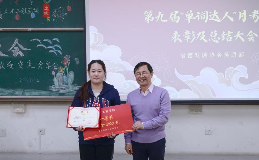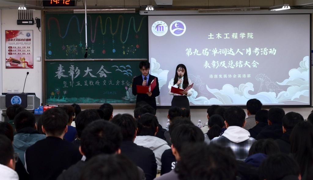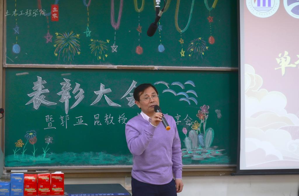 4月12日下午,土木工程学院邀请英国布拉德福德大学教授郭亚昆参加学院第九届“单词达人”月考表彰大会,为学生们进行学习经验分享。学院党委副书记邵先锋、团委书记王俊富、部分辅导员以及学生代表参加。