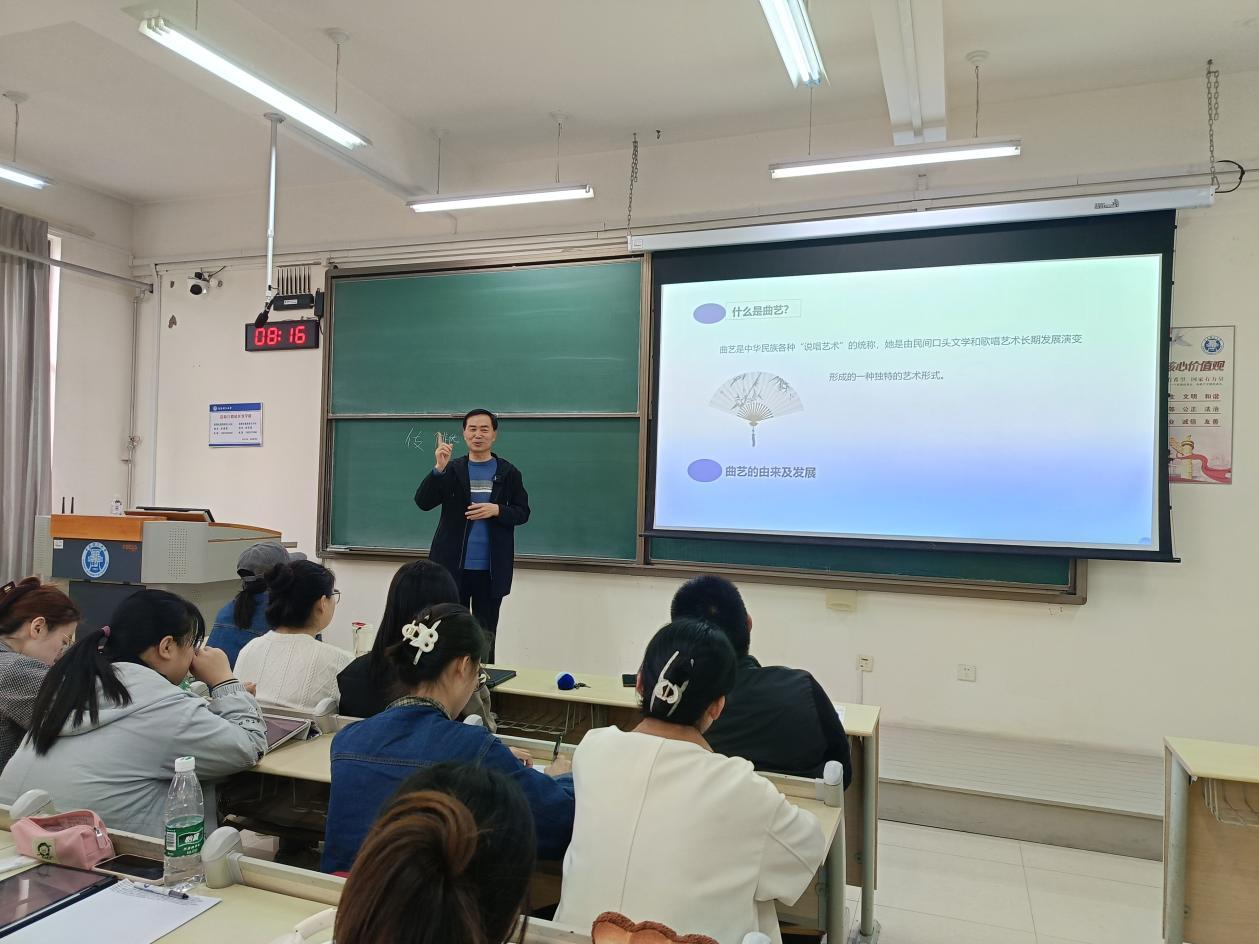 陈建民老师强调,曲艺文化历史悠久,具有极强的趣味性和艺术感染力。他发出呼吁:“我今天来到我们人文与外国语学院,为大家分享我国的民间文化瑰宝——曲艺文化,是希望大家能多了解一些曲艺方面的知识,能更深入地体会中国传统民间艺术的魅力。当然,如果有同学能由此而进行艺术创作就更好了!”