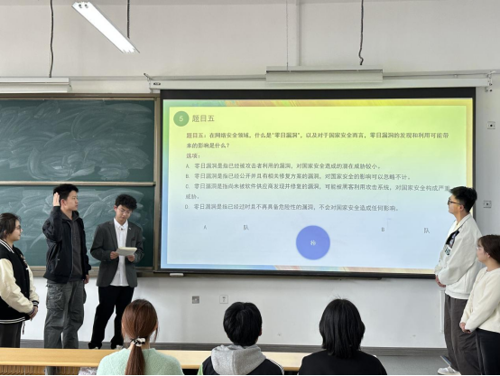 答题比赛,实现国家安全知识教育赋能提升。4月11日下午,商学院组织开展国家安全知识竞赛答题比赛,答题比赛利用抢答的方式开展,参赛选手在规定时间内抢答主持人所出示的问题,用学生喜闻乐见的方式增加学生们对国家安全知识的理解,实现国家安全知识教育赋能提升。