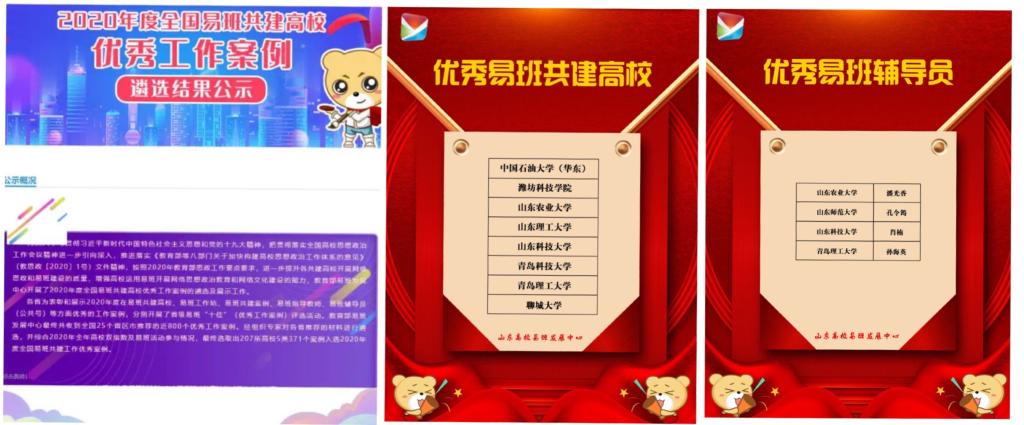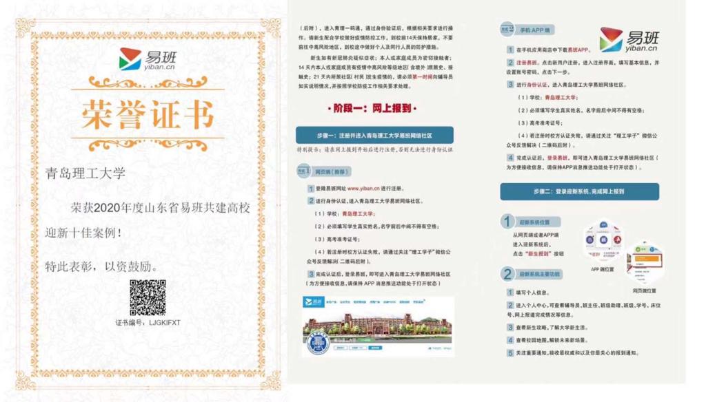 创新、实践,打造易班品牌。我校易班通过易班大数据平台,顺利完成新生网上报到、新生教育工作;通过易班题库,完成覆盖各年级的安全知识答题、校规校纪答题;全年进行常态化疫情防控、安全知识、爱国荣校、学风建设等方面的易班网络教育活动;每年平均开展12个特色校级活动,学生覆盖面广,教育辐射面大。2020年迎新工作案例被评为“山东省易班共建高校迎新十佳案例”。全年每月双指数均位列全省前十名。