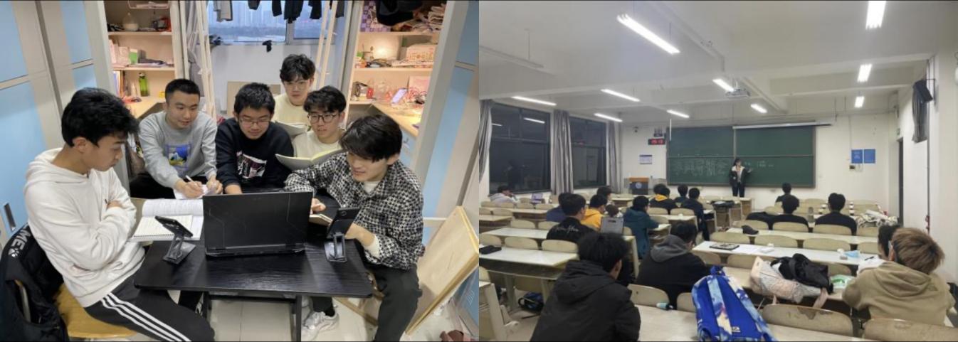 在班里,辅导员和班主任老师积极引导同学们树立正确积极的学习态度和行为规范,形成积极向上的班级学习氛围。通过制定课堂考勤纪律、开展班级活动等方式,促进班级凝聚力和向心力。在这方面,班级做到了课堂高出勤率、作业高完成率、考试高通过率。各学科教课老师积极树立榜样、以身作则,带领同学们不断学习,克服难题;学业导师作为学生的学术指导老师,严格要求自己和班集体,通过学风班会、课后答疑、作业督促等方式端正同学们的学习态度,树立了良好的榜样;辅导员老师极培养同学们的自律意识,让同学们在课堂上中自主思考、自主探索。组织课后自习、课外拓展、班内互助等活动,引导班内学生不断成长;在宿舍中,组建学习小组,同学们可以共同讨论课程内容、解决问题,并分享学习资源和经验;聘请学风导航员来帮助同学们及时答疑解惑,为同学们提供科创比赛及学习等方面的帮助。