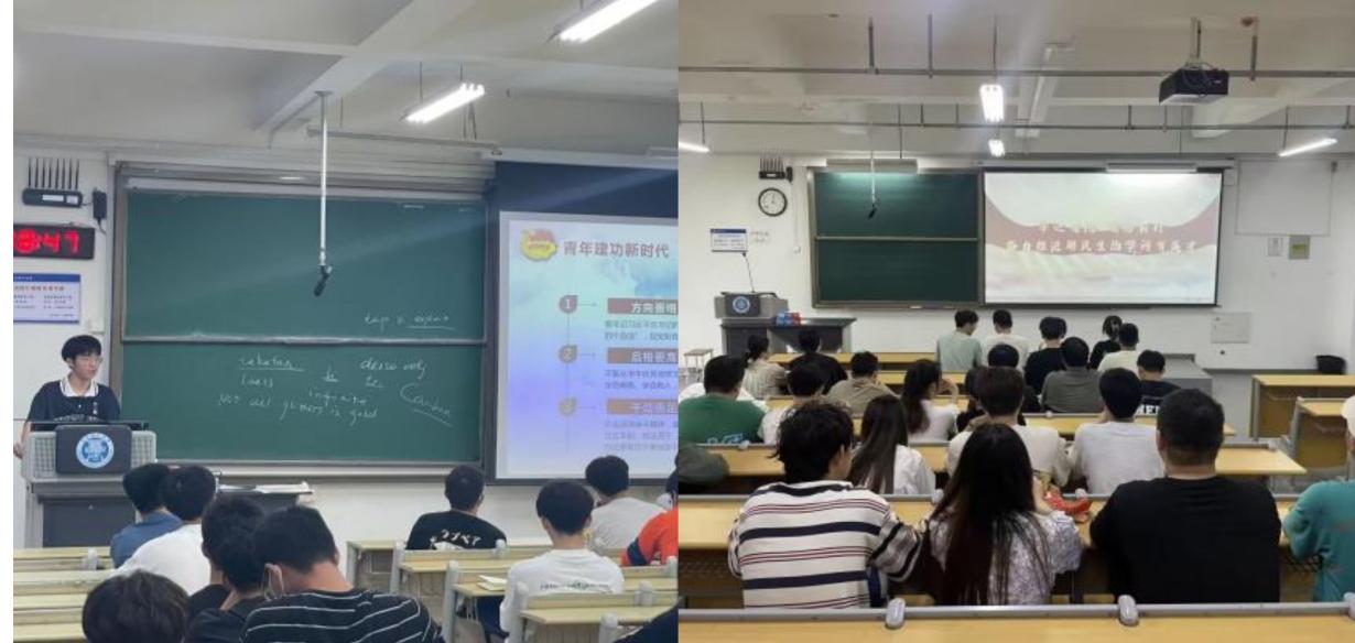 班级团支部组织学习党的二十大精神,引领班级青年自觉沿着习近平总书记指引的方向茁壮成长,扛起时代责任。以建党百年、庆祝中国共产主义青年团成立100周年、建校70周年为契机开展主题团日活动,让对党的真挚信赖、对国家的赤诚热爱、对崇高理想的不懈追求在青年心中深深扎根,自觉把青春梦融入中国梦。班级以“青年大学习”“学习强国”等平台为平台,实现青年学生思想教育全覆盖,两年来,班级青年大学习完成率100%。班级现有中共预备党员2名,入党积极分子11名,青年团员积极向组织靠拢,向组织递交入团申请书人数占比100%。班级成员在校级院级学生组织中发光发热,累计组织参与各类文体活动40余次,服务师生超300余人次。班级坚持不懈开展思想引领,让对党的真挚信赖、对国家的赤诚热爱、对崇高理想的不懈追求在青年心中深深扎根,自觉把青春梦融入中国梦。
