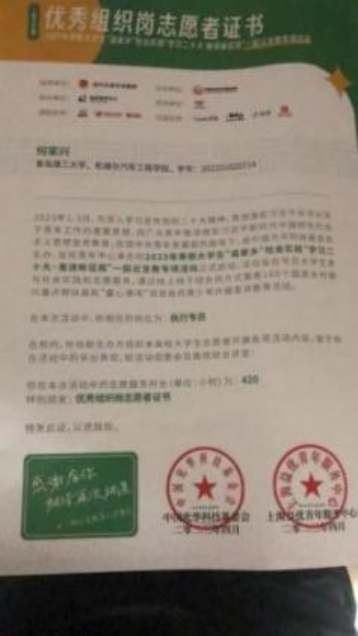 (6)班级在社会实践的志愿活动中,参加防疫工作的核酸志愿者,校方举办的科技志愿实践活动也获得了积极的响应。