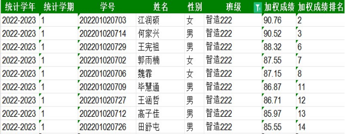 ②在2022-2023学年第一学期,我班学习成绩在本专业前15名有9名同学。