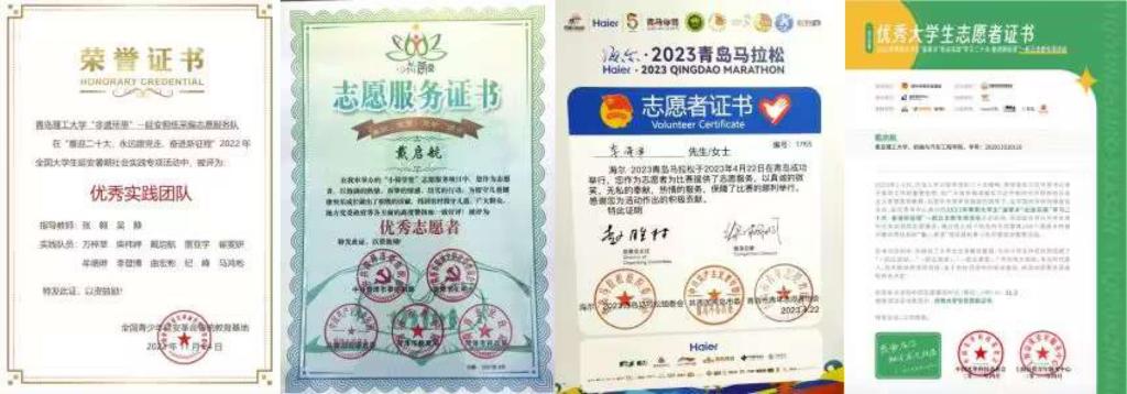社会实践方面,多次获得“优秀实践团队”荣誉称号,累计志愿服务次数达150余人次,志愿服务时长达1500小时,展现了新时代大学生的优良风貌。