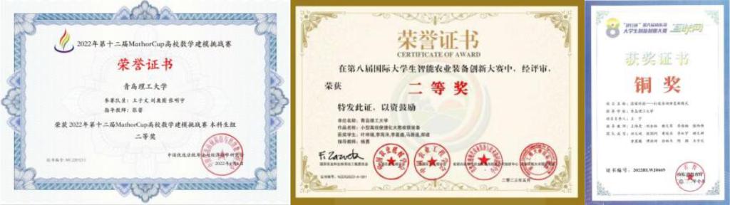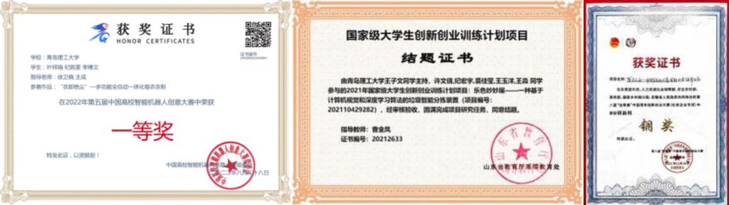 积极响应学校、学院号召,提高班级学生科技创新竞赛的参与度,实现理论联系实践,以赛促学,班级定期召开科技创新竞赛经验分享会、交流会,在老师和同学们的共同努力下,班级成员科技创新覆盖率达100%。班级共斩获国家级奖项9项,省级奖项31项,发表EI检索论文1篇,授权实用新型专利1项,受理发明专利1项。主持或参与大学生创新创业训练计划项目国家级1人次,省级1人次,校级11人次。叶祥瑞同学以负责人身份在第五届中国高校智能机器人大赛中荣获国家级一等奖;王子文同学在山东省“互联网+”大学生创新创业大赛中荣获省级铜奖;宋欣泽同学在山东省大学生数学竞赛中荣获省级一等奖等。